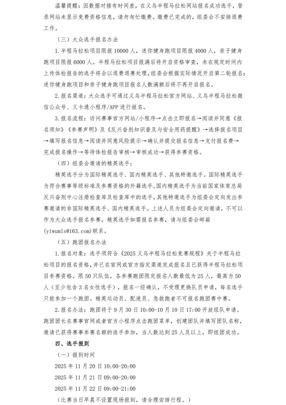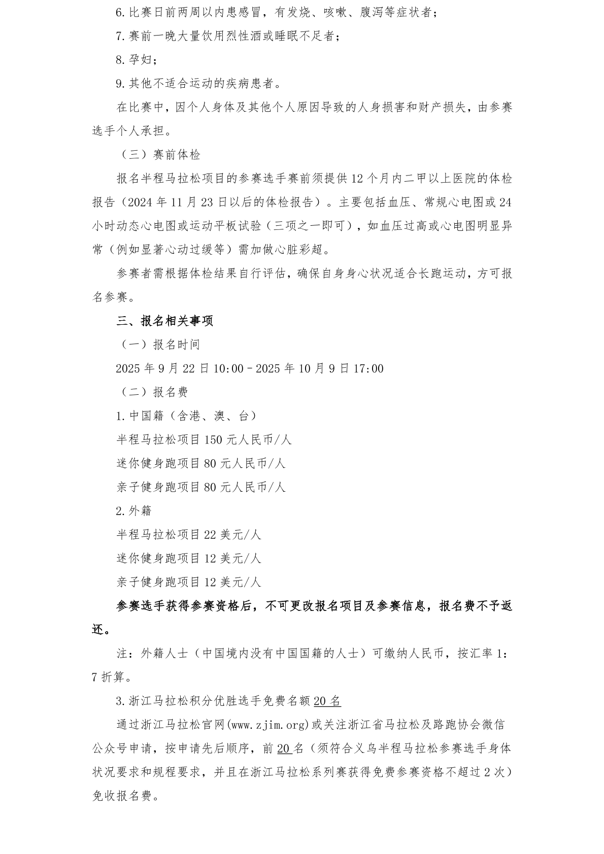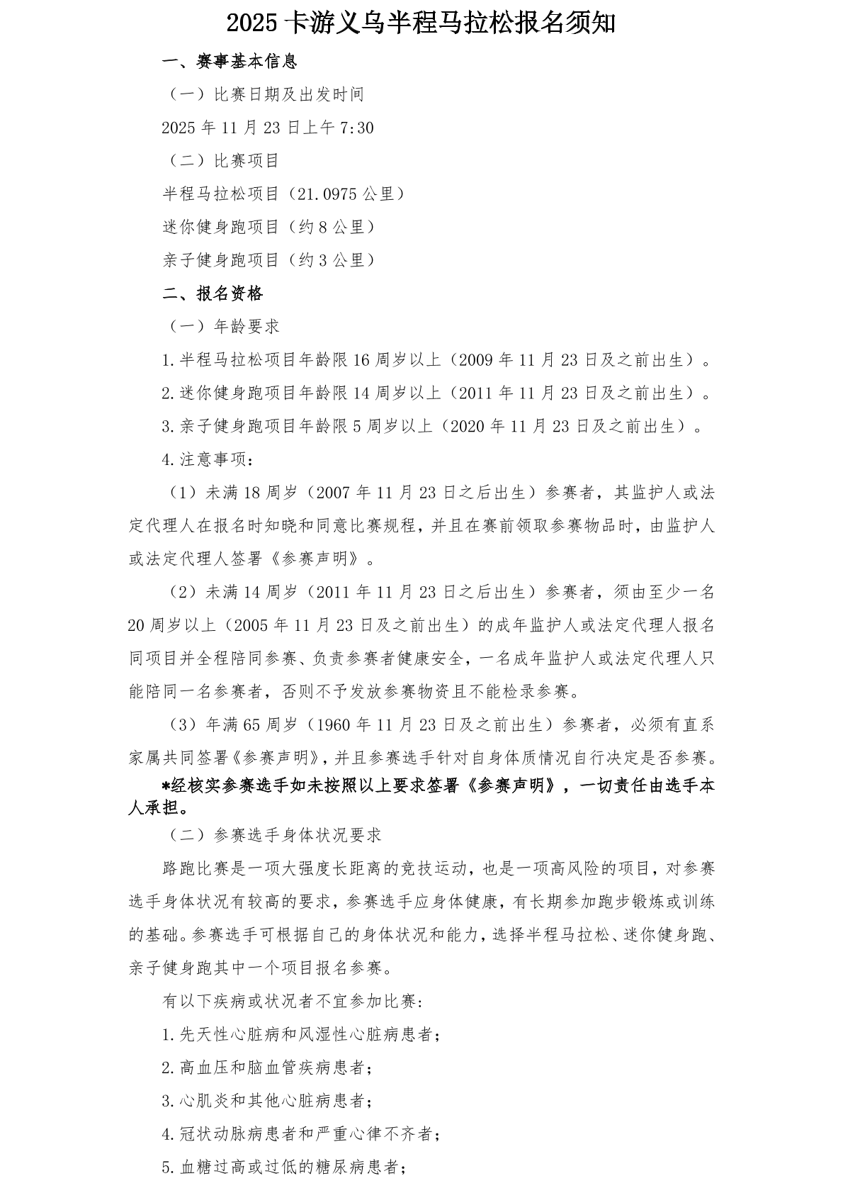 Registration Notes - 2025卡游义乌半程马拉松 - 2025卡游义乌半程马拉松